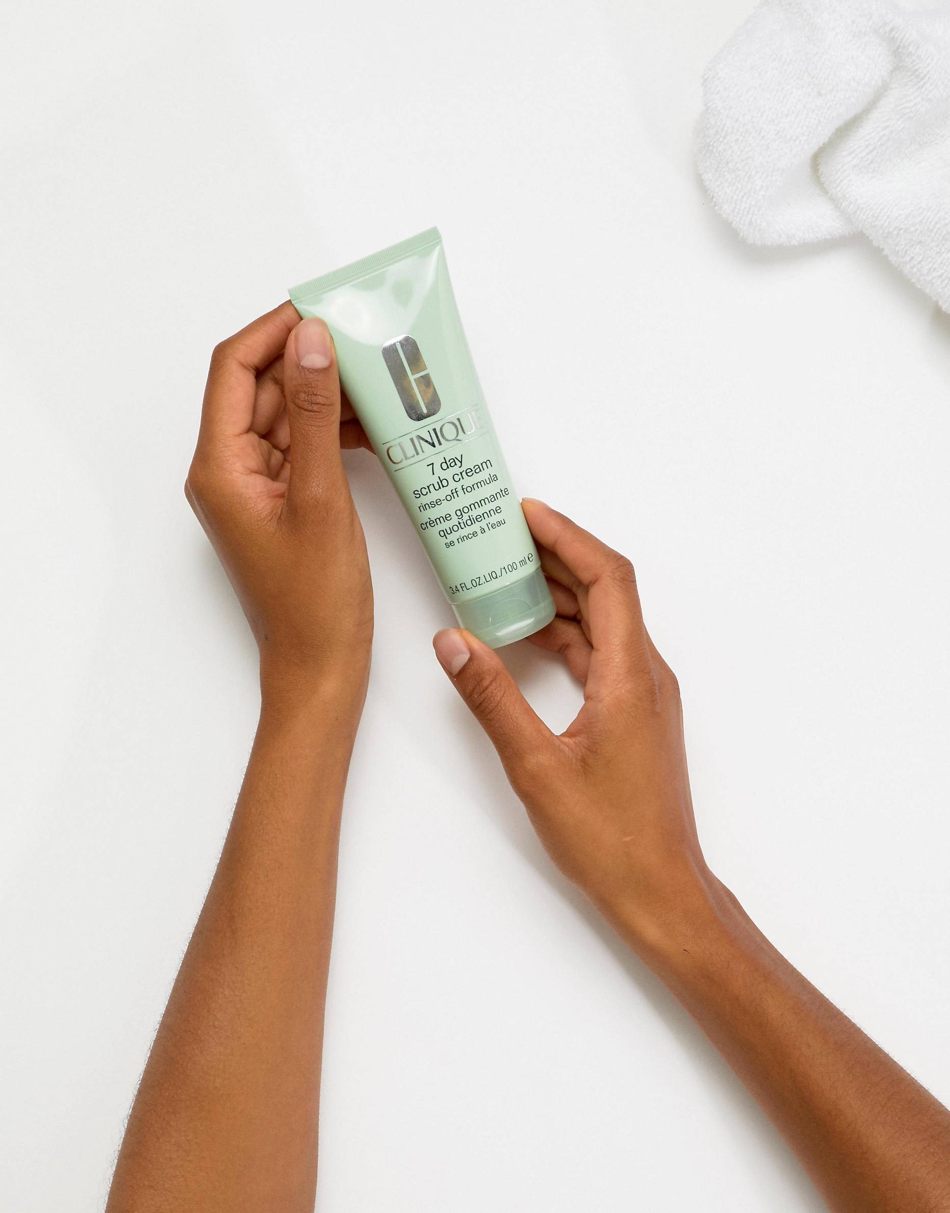- اسکراب ۷ روزه ی کلینیک یک لایه بردار است که سطح پوست را جلا داده و بافت آن را تصفیه، صاف و یکدست میکند.